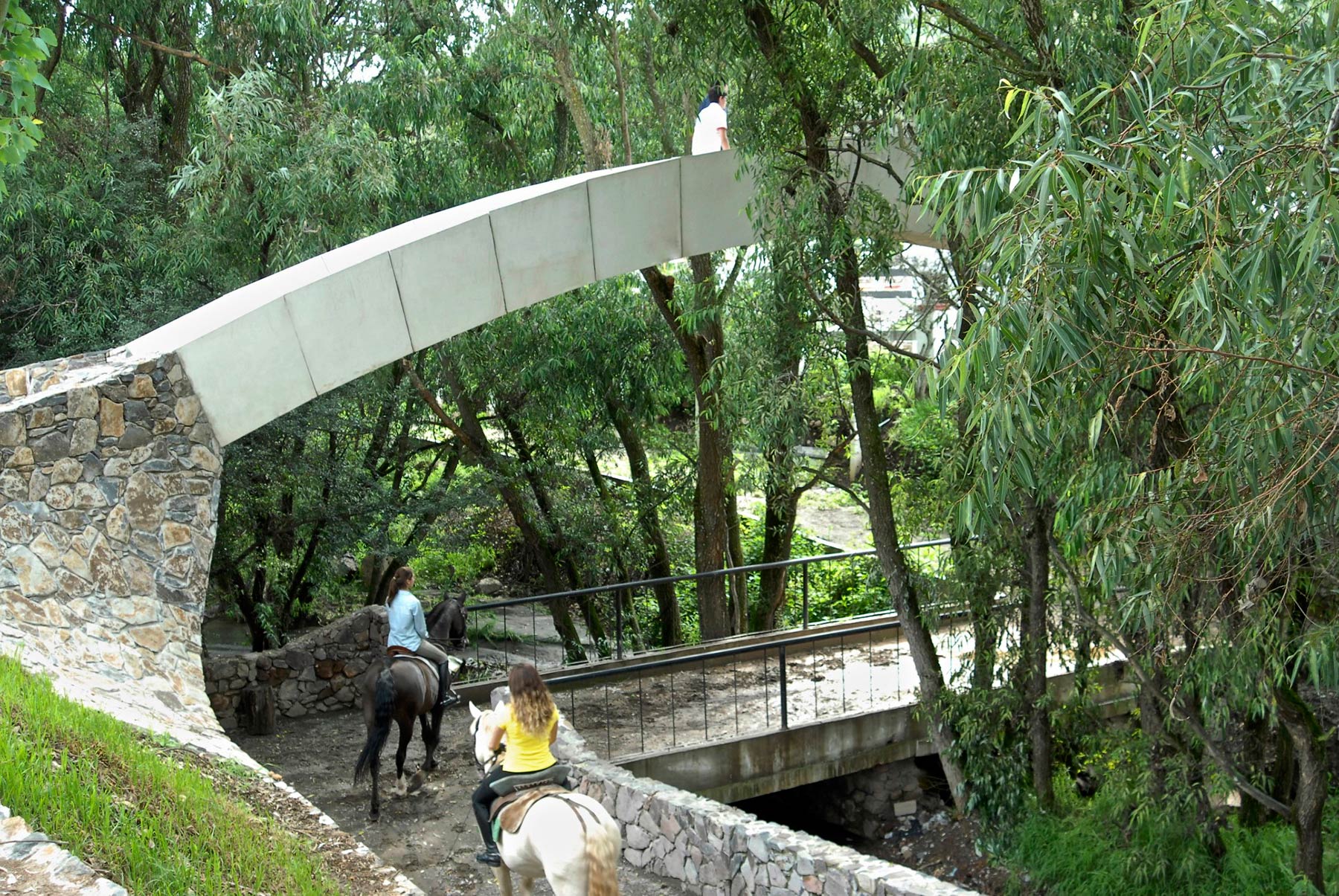 Al recibir la encomienda de realizar un puente que conectara el ala norte con el ala sur de un club hípico en Atizapán de Zaragoza, el arquitecto Rafael Barona Coghlan sugirió un puente romano como se construían hace 20 siglos.