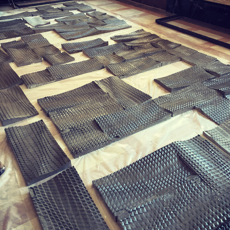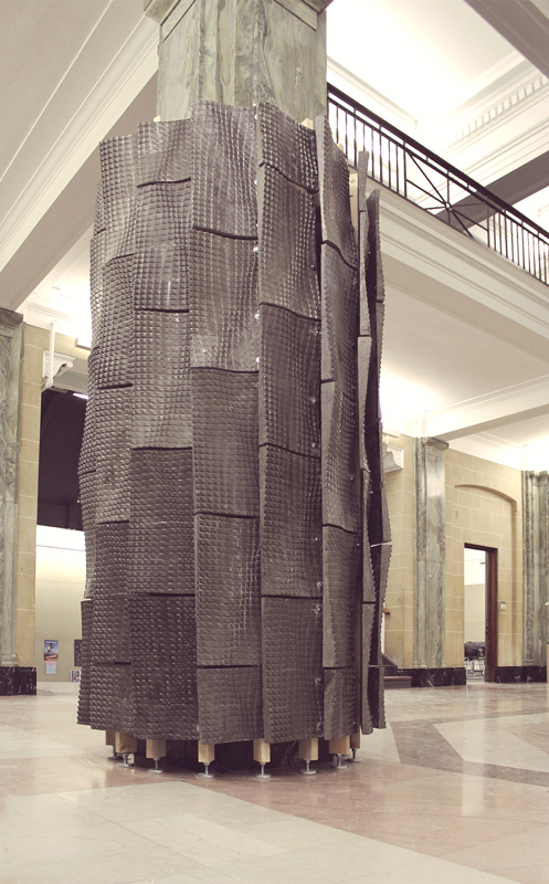 A través de la interacción entre los ingenieros de CEMEX y los arquitectos, se llevó a cabo el diseño, moldeado y ejecución de las baldosas, las cuales luego fueron perforadas y montadas en marcos de madera para crear la torre de baldosas que fue construida alrededor de una columna existente.