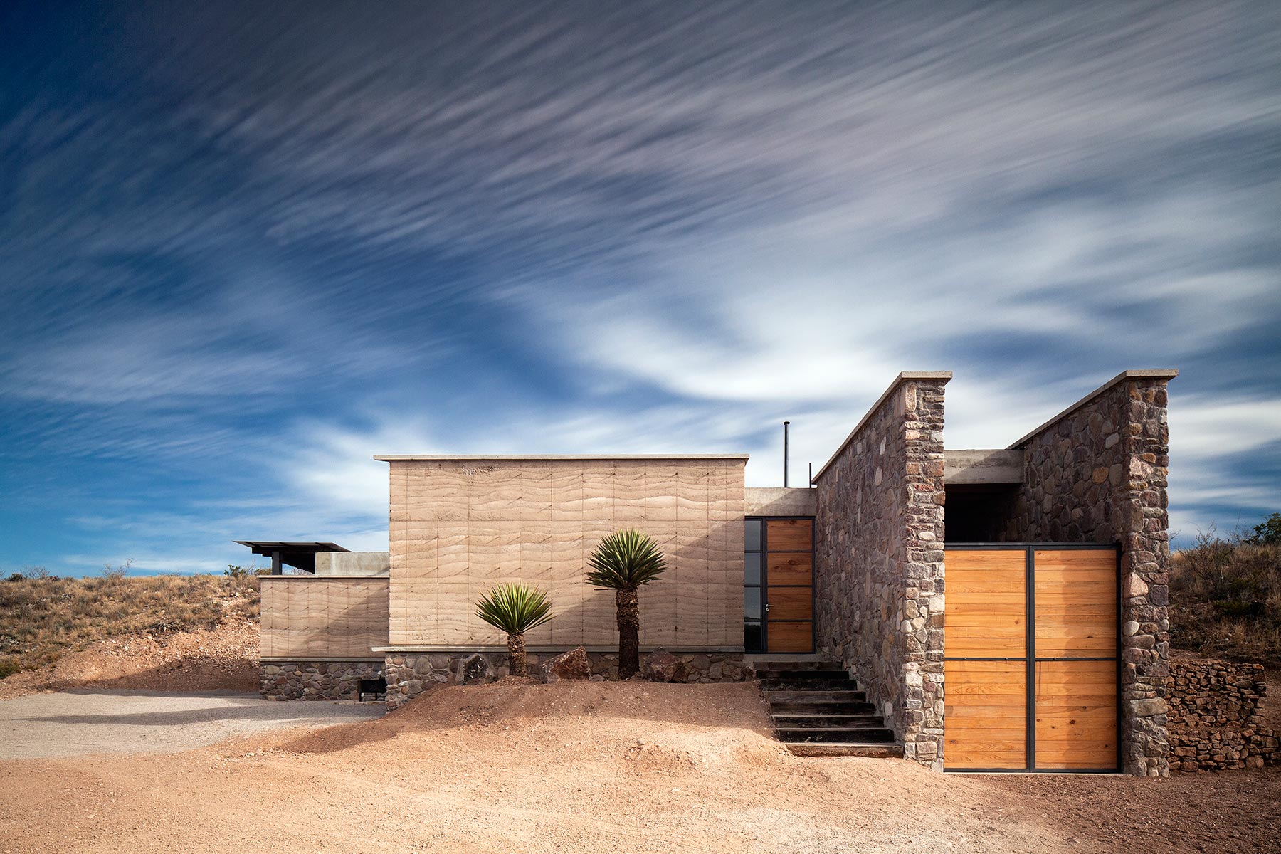 En los sitios más remotos e incluso bajo condiciones climáticas adversas, CEMEX está presente en proyectos que se integran a sus alrededores y buscan generar el mínimo impacto ambiental. Este es el caso de La Cueva, proyecto arquitectónico ubicado en El Carmen, área de conservación transfronteriza privada, ubicada entre México y Estados Unidos. La reserva de El Carmen, abarca zonas de desierto, pastizales, bosques y otros ecosistemas ricos en biodiversidad. La Cueva es una propiedad de 260 metros cuadrados que se encuentra a varios kilómetros de la civilización y apenas es accesible por caminos de terracería.