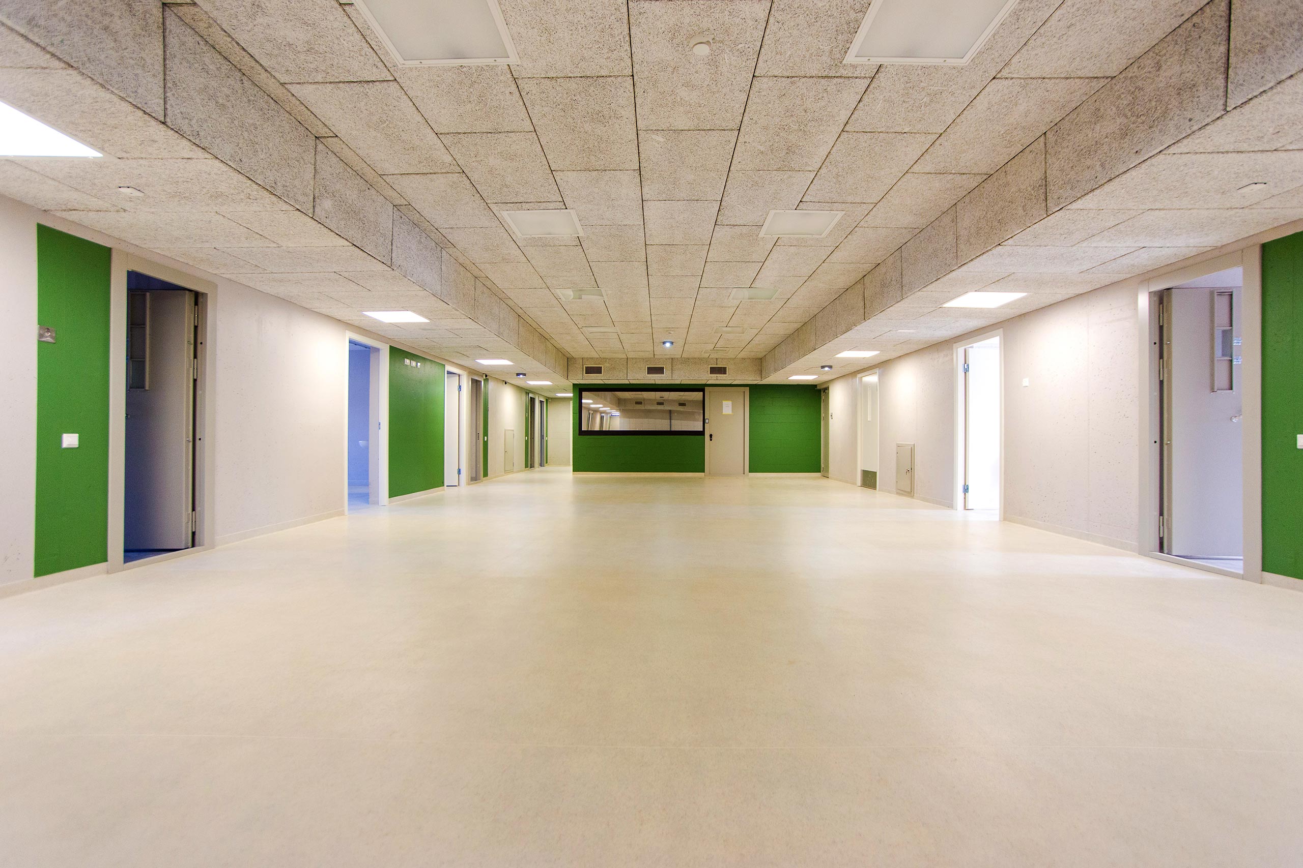 El edificio está dividido en tres bloques, cada uno con dos plantas. Los bloques A y C contienen instalaciones para terapias individuales y en grupo, así como las celdas de los ocupantes. El bloque B contiene salas de formación, un laboratorio de computación, biblioteca y sala de lectura, y un gimnasio.